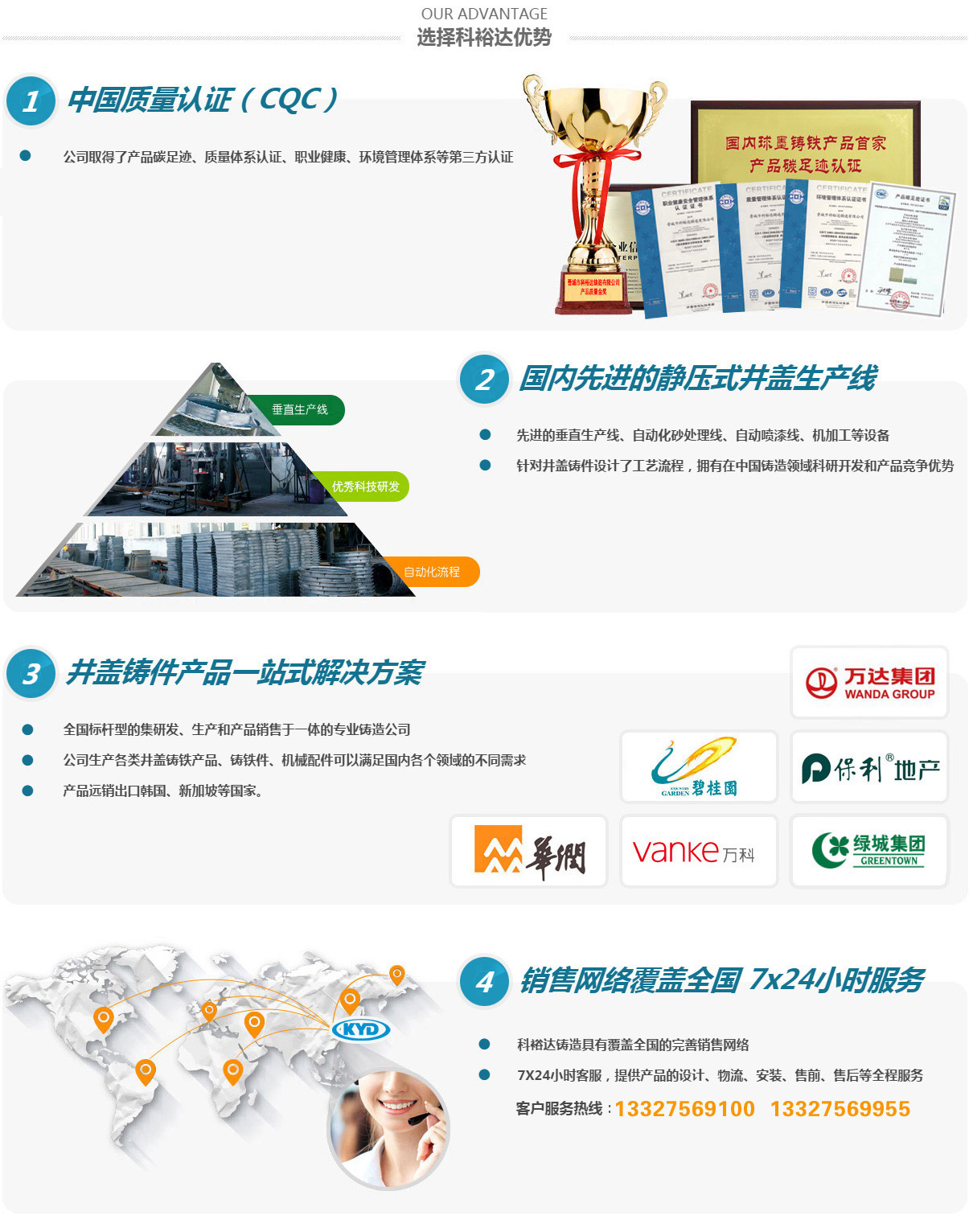 歡迎訪問(wèn)晉城市科裕達(dá)鑄造有限公司,全國(guó)標(biāo)桿型井蓋類鑄造企業(yè),年產(chǎn)逾10萬(wàn)噸球墨井蓋、鑄鐵井蓋等產(chǎn)品。 聯(lián)系我們 ENGLISH